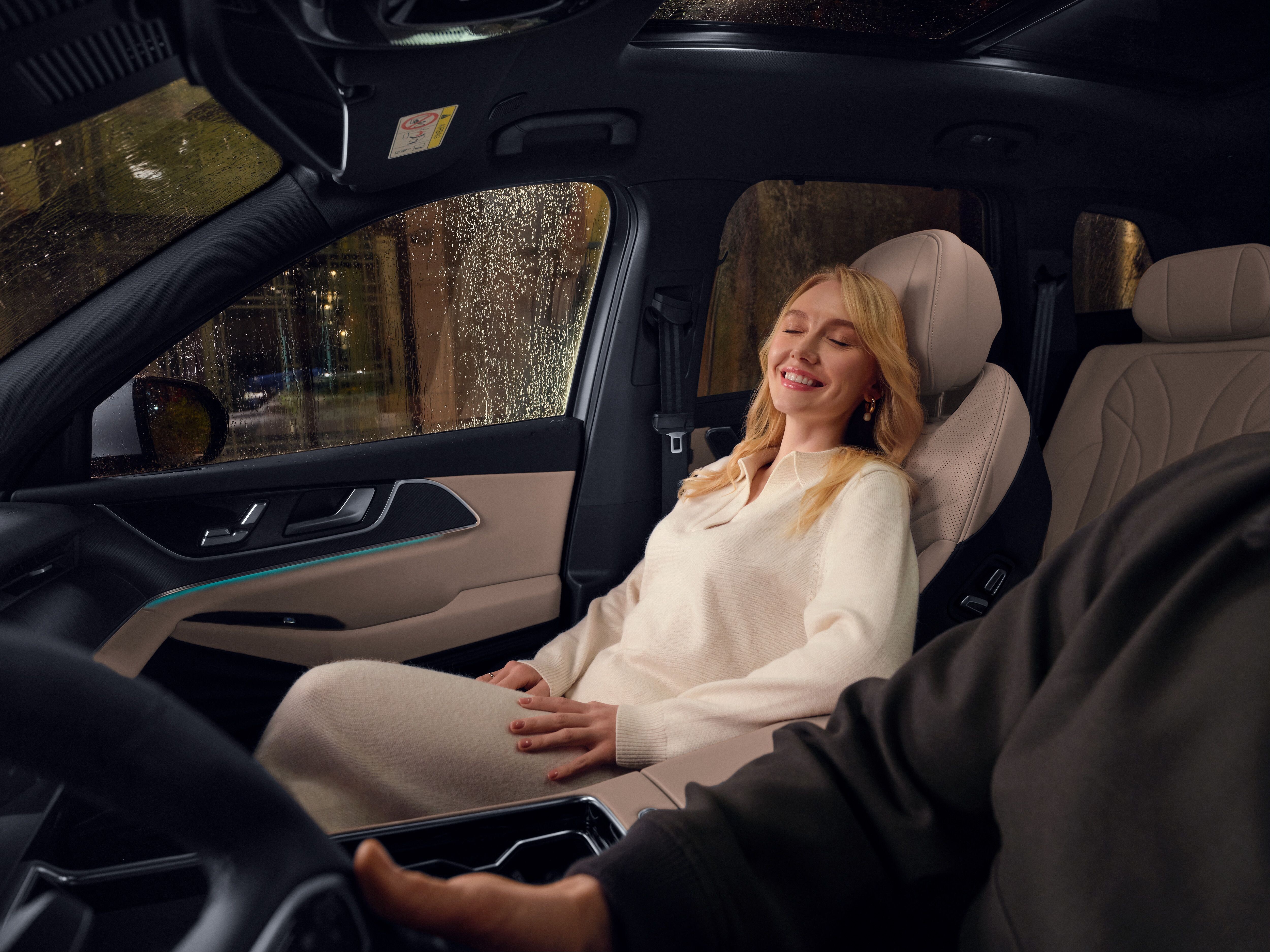 Интерьер выполнен с вниманием к деталям: мягкие материалы отделки, дефлекторы обдува для второго и третьего рядов, подогрев всех сидений, комфортная эргономика и продуманные элементы управления. Панорамная крыша пропускает достаточно света даже в короткий зимний день, создавая ощущение уюта и простора.